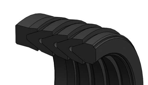 The AB Seals VP is a vee pack piston seal for medium duty applications offering ecellent performance and long life even under difficult operating conditions such as pressure surges, vibration and some misalignment. The seal consists of a male and female adaptor and many vee rings as per our choice. It has grooves across one face to ensure equal pressure to the sealing edges of the vee ring. The female adaptor uses a hard rubberized fabric to support the vee rings and protect them from etrusion damage. At high pressure the lips of the adaptor acts as a secondary seal.
