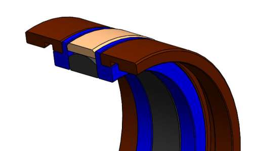 The Slide ring seal for piston SRS acts a double acting hydrulic seals. Its construction prefers for heavy duty machinery cylinders. The SRS consist of 6 part, an elastic internal ring of NBR, a sealing ring of abrasion proof PTFE bronze compound,two lateral support ring of Polyurethane and two bearing rings of pressure resistant PGF30 compound.The elastic internal ring provides initial pressure by means of which the side ring is pressed against the cylinder wall even in the pressure is less.